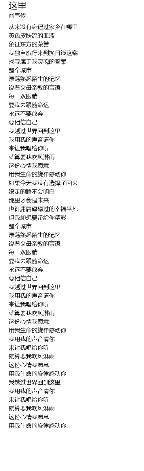 | [04:03.260] | 用我生命的旋律感动你 |