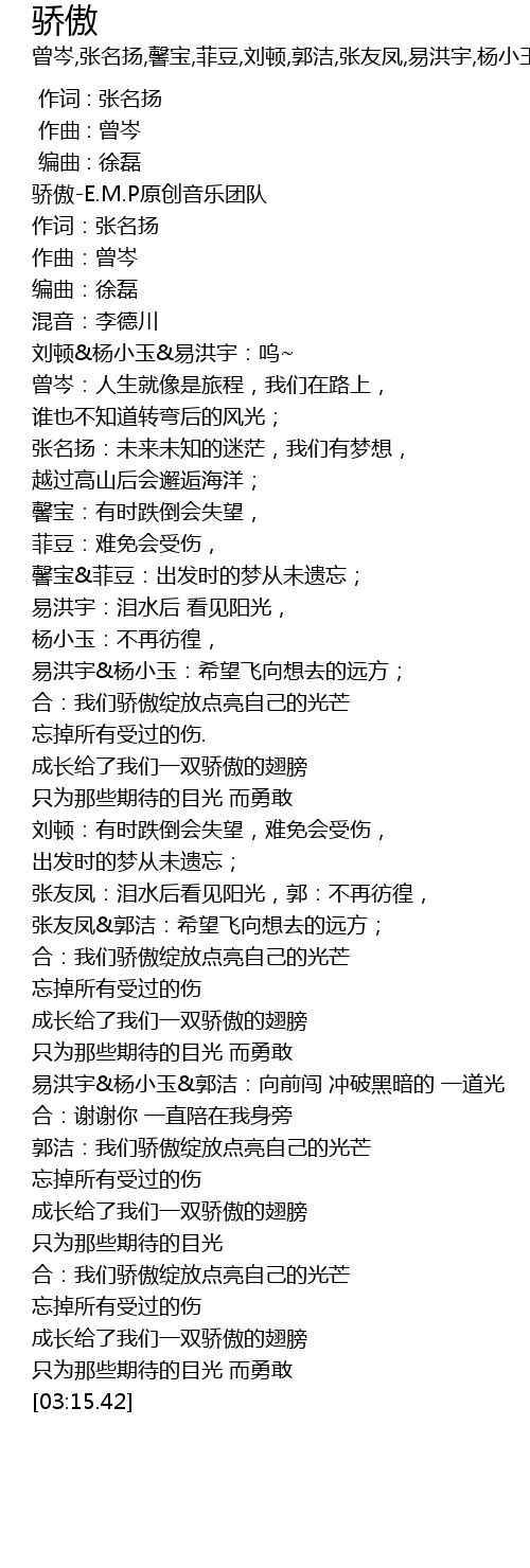 | [00:01.11] | 骄傲-E.M.P原创音乐团队 |