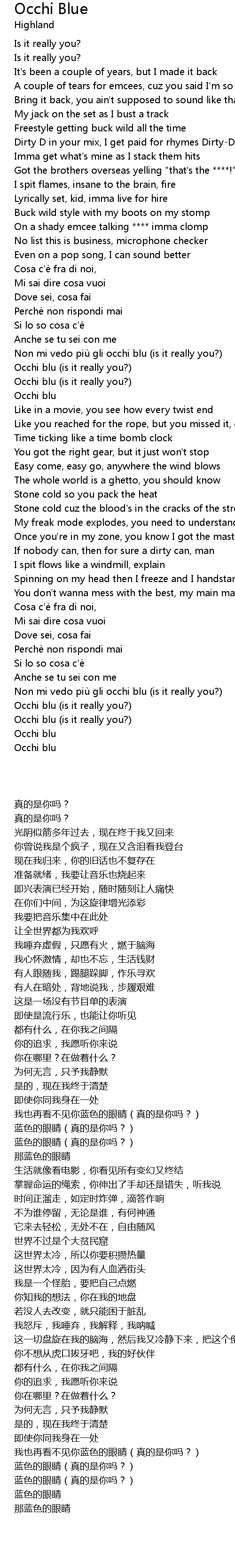 | [03:23.57] | Occhi blu (is it really you?) |