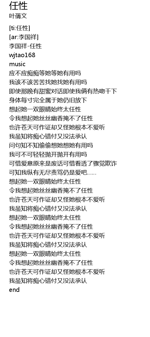 | [00:56.823] | 令我想起她丝丝幽香掩不了任性 |
