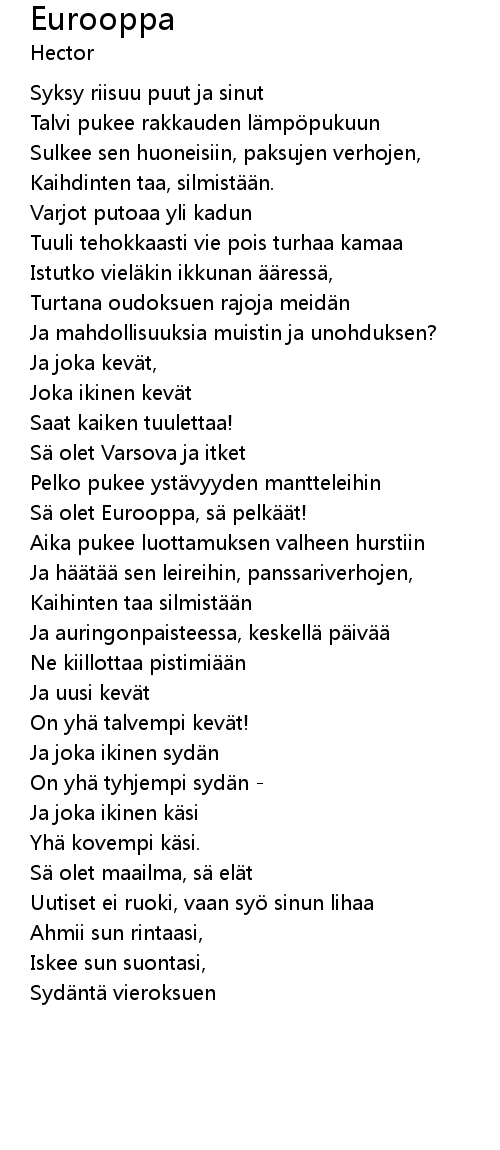 | Sä olet Eurooppa, sä pelkäät! | |