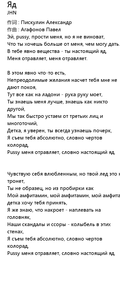 Pussy меня отравляет, словно настоящий яд. |