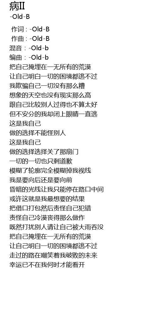 | [01:48.13] | 幸运已不在我何时才能看开 |