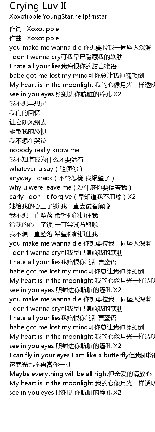 | i don t wanna cry kě wǒ zǎo yǐ yǐn cáng wǒ de ruǎn lèi | |