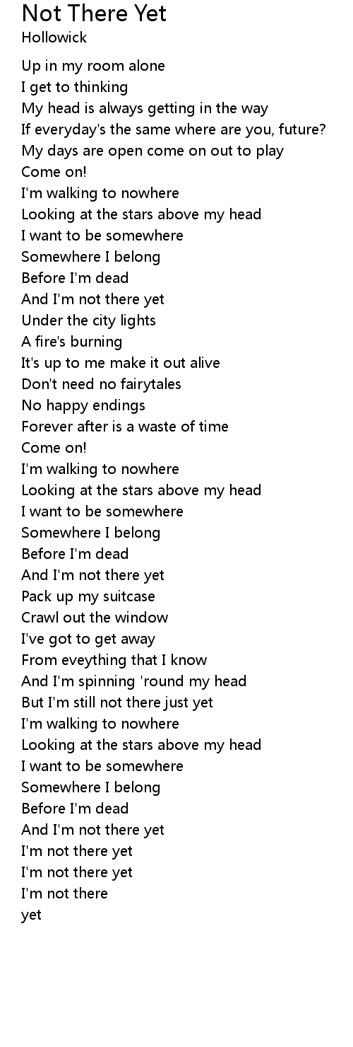 And I'm not there yet |
