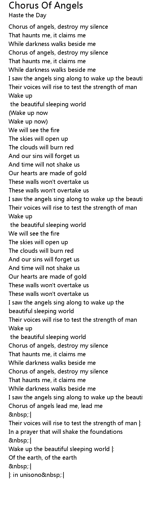Chorus of angels, destroy my silence |