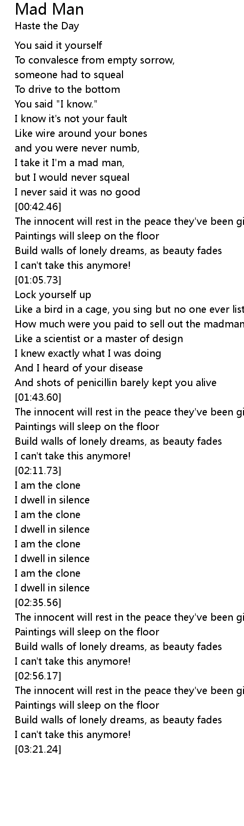 I take it I'm a mad man, |