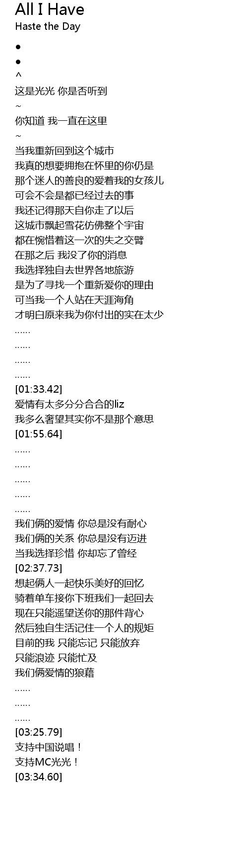 | [03:31.71] | 支持MC光光! |