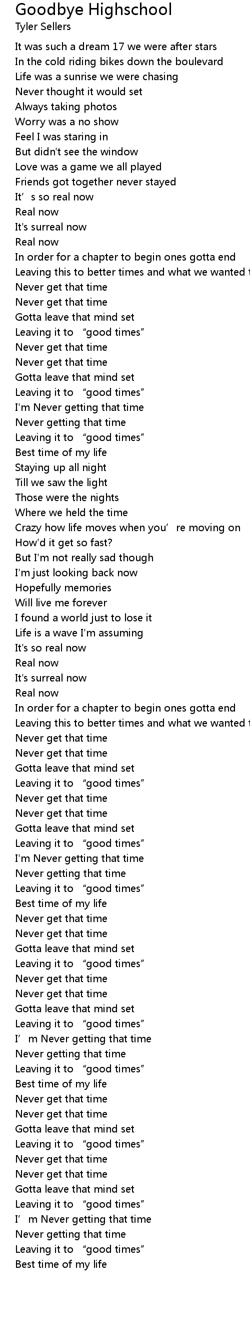 | [03:06.48] | Best time of my life |