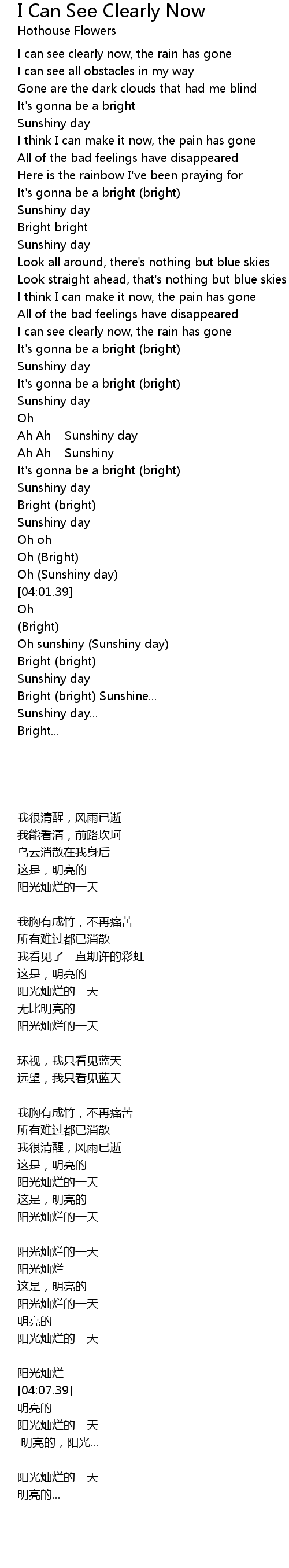 I can see clearly now, the rain has gone |