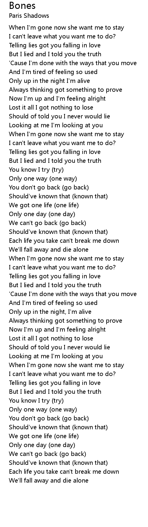 When I'm gone now she want me to stay |
