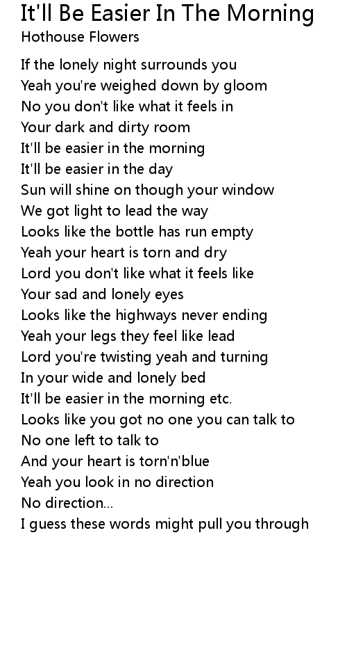 It'll be easier in the morning etc. |