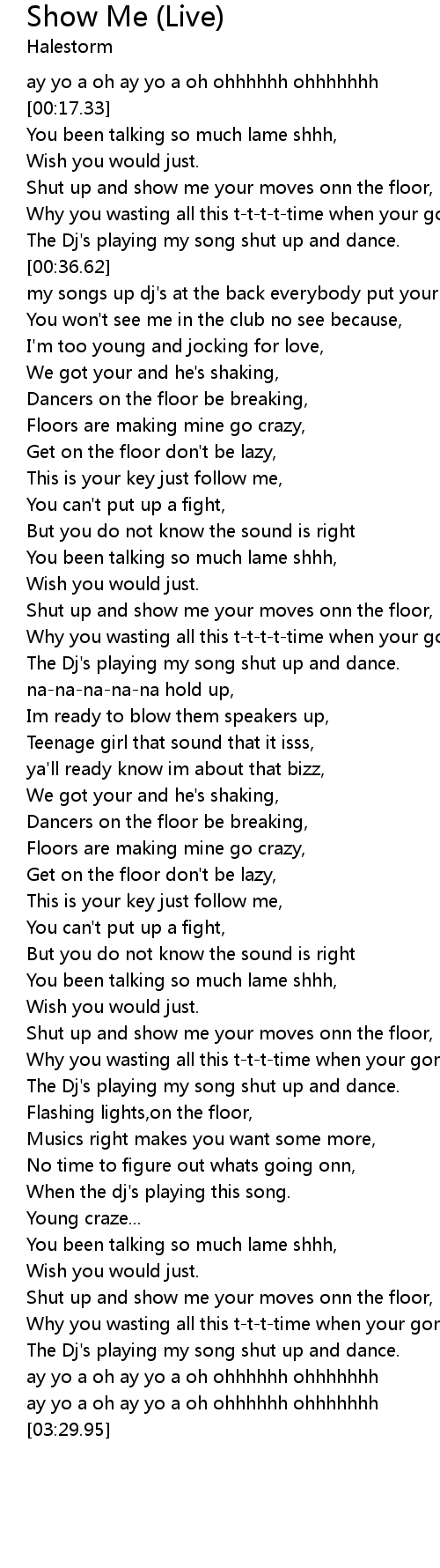 Shut up and show me your moves onn the floor, |