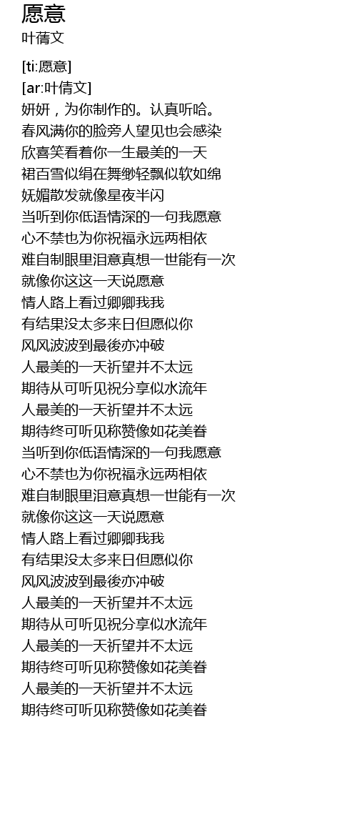 | [00:47.73] | 当听到你低语情深的一句我愿意 |