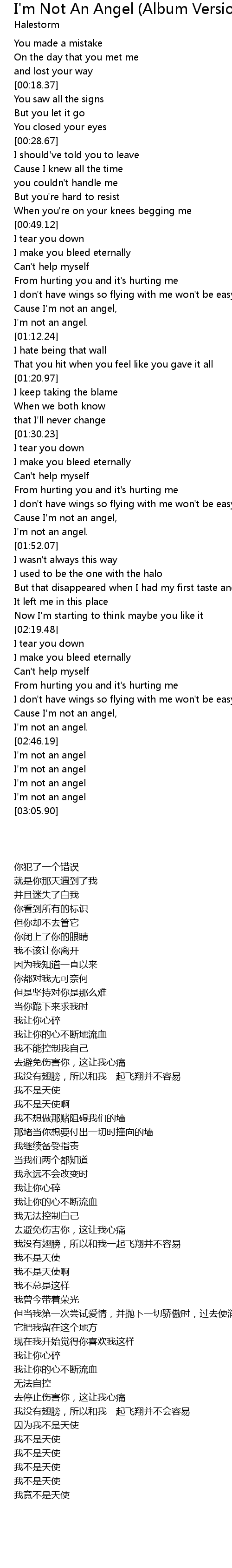 | [03:01.38] | I'm not an angel |