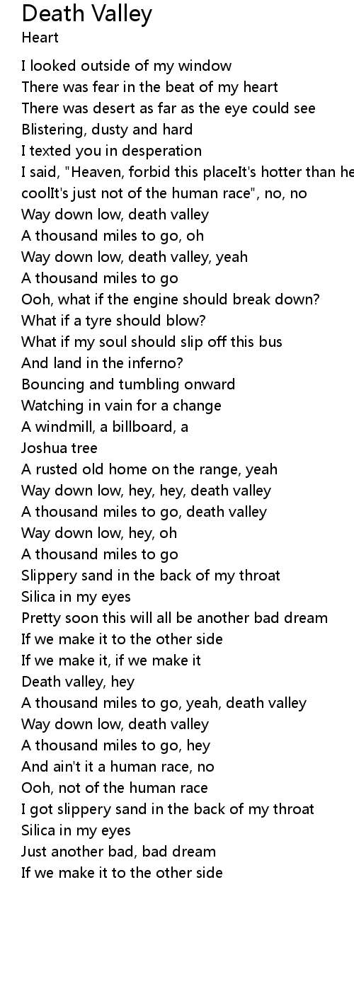 Way down low, hey, hey, death valley |