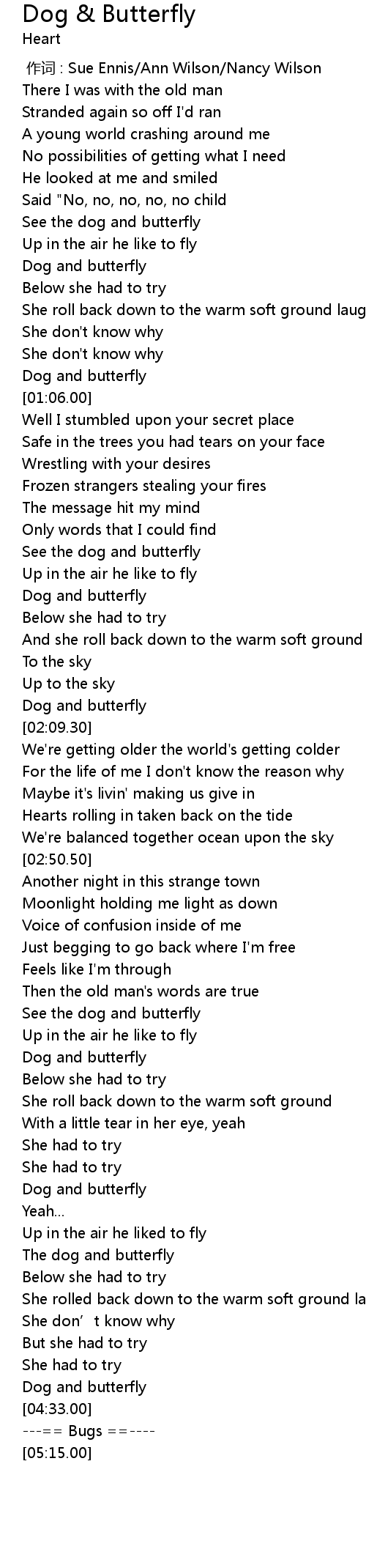 | [04:04.70] | The dog and butterfly |