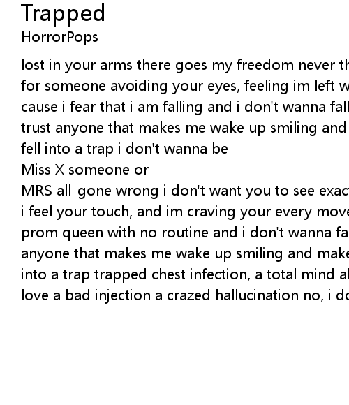 | lost in your arms there goes my freedom never thought that i, could ache so much for someone avoiding your eyes, feeling im left with no disguise please rewind cause i fear that i am falling and i don't wanna fall in love no i don't wanna trust anyone that makes me wake up smiling and makes me blind caught in a trap fell into a trap i don't wanna be | |