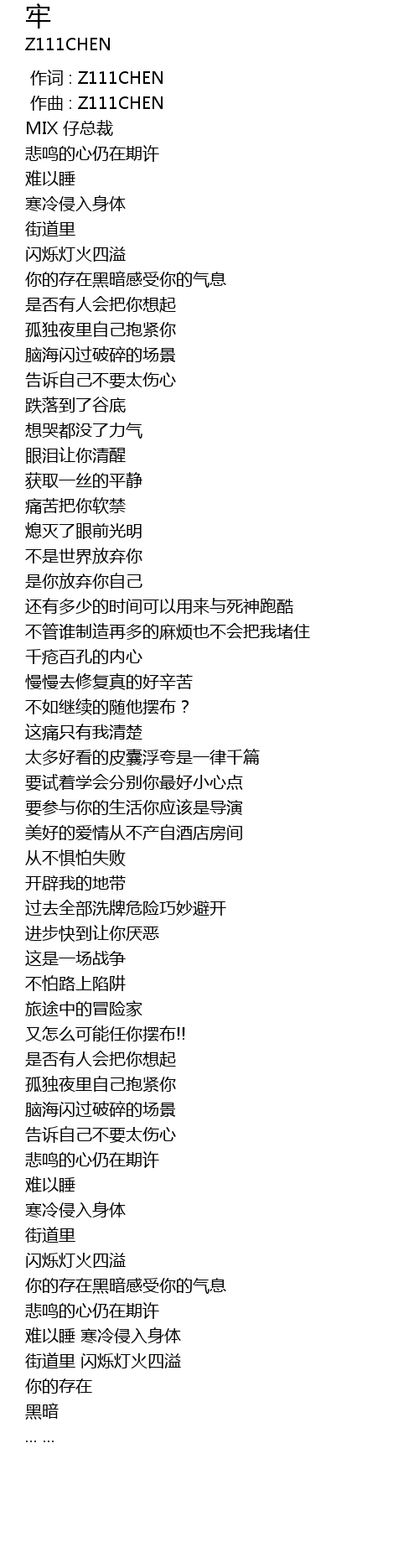 | [00:00.000] | 作词 : Z111CHEN |