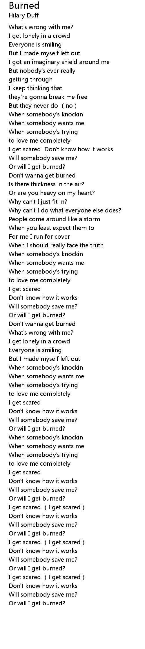 | [01:52.929] | Don't wanna get burned |