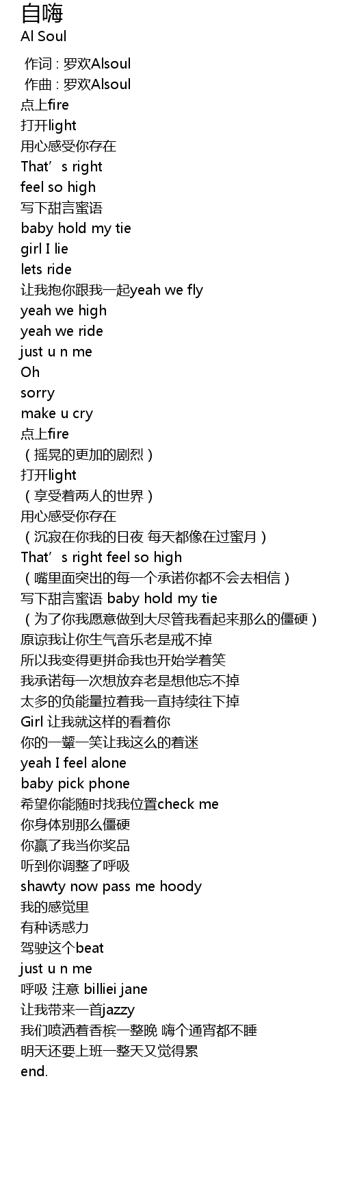 | [00:00.000] | 作词 : 罗欢Alsoul |