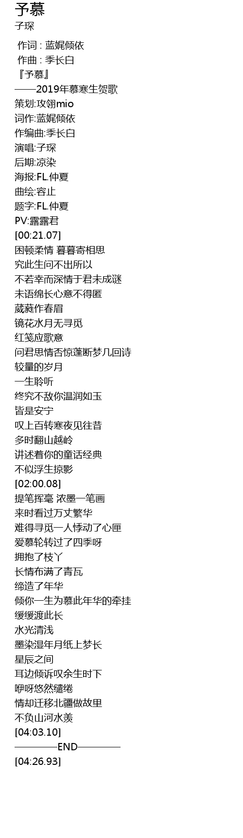 | [00:03.12] | ——2019年慕寒生贺歌 |