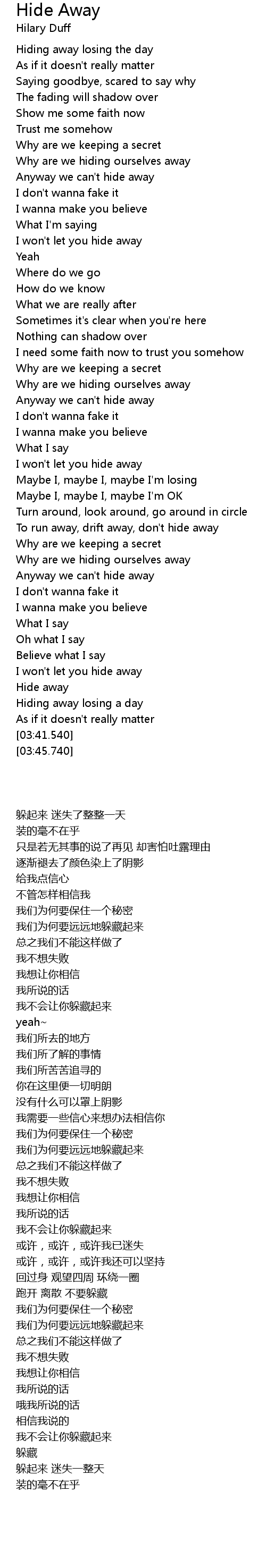 | [02:35.310] | To run away, drift away, don' t hide away |