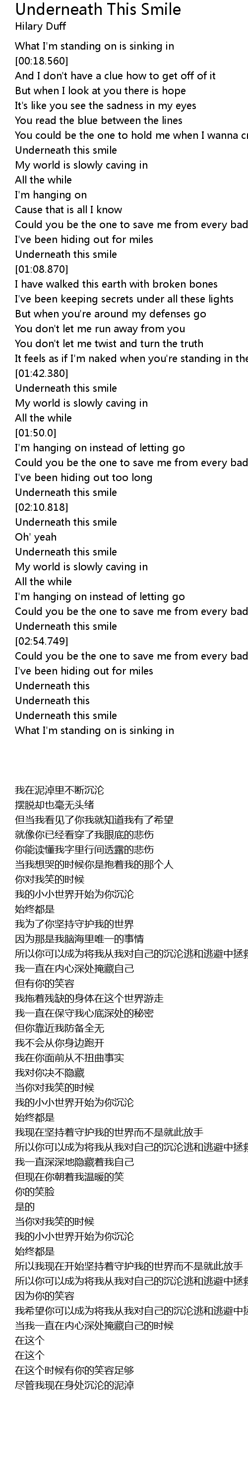 | [02:39.249] | Could you be the one to save me from every bad habit that has helped me dig this hole? |