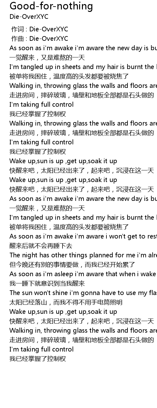 | [00:47.640] | Wake up,sun is up ,get up,soak it up |