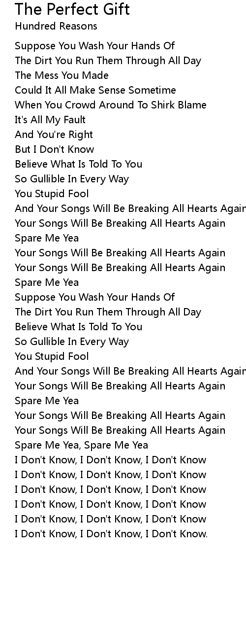 I Don't Know, I Don't Know, I Don't Know. |