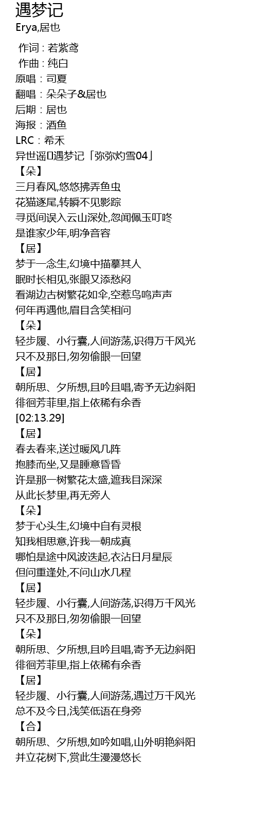 | [00:23.54] | 翻唱:朵朵子&居也 |