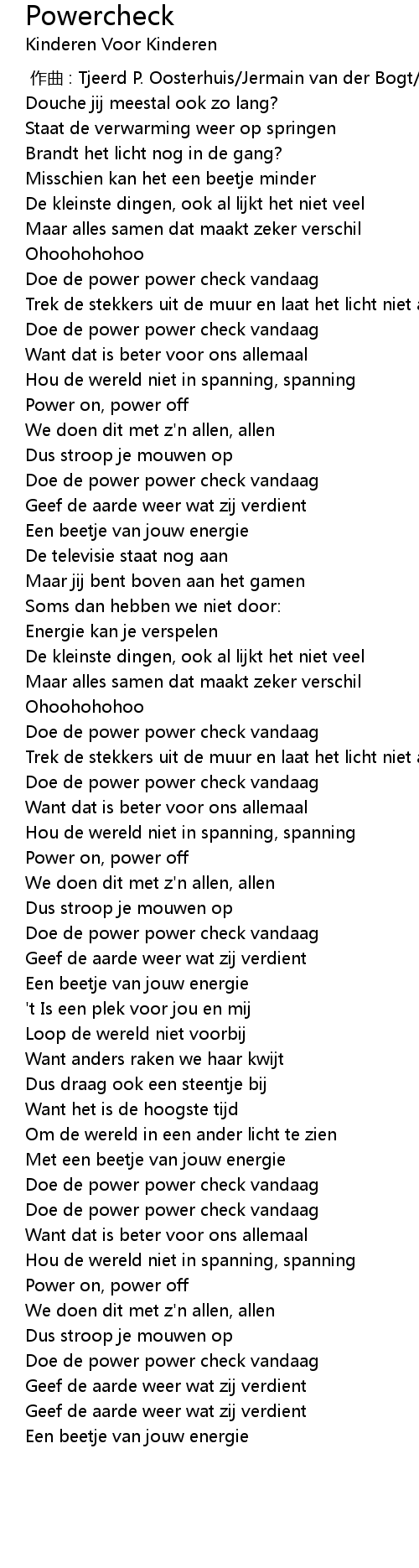 | [00:26.68] | Doe de power power check vandaag |