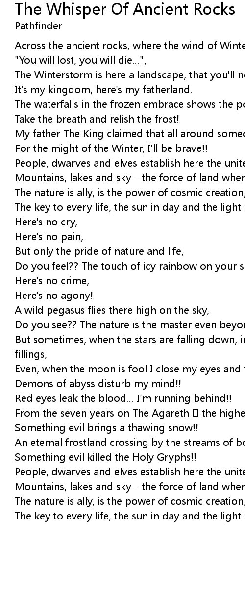 | Across the ancient rocks, where the wind of Winter' s Heart whispers | |