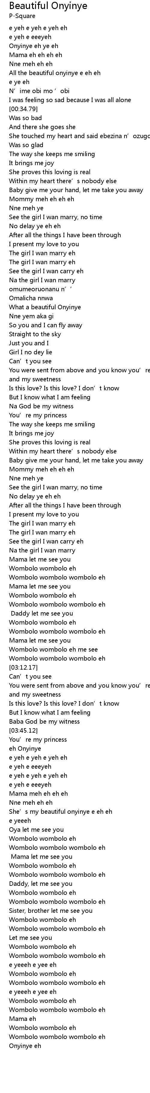 | [04:05.45] | She' s my beautiful onyinye e eh eh |