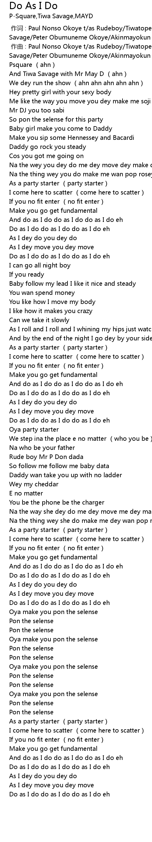 | [01:01.564] | Do as I do do as I do do as I do eh |
