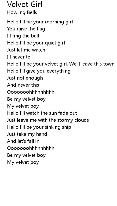 Hello I'll be your velvet girl, We'll leave this town, We'll change the world |