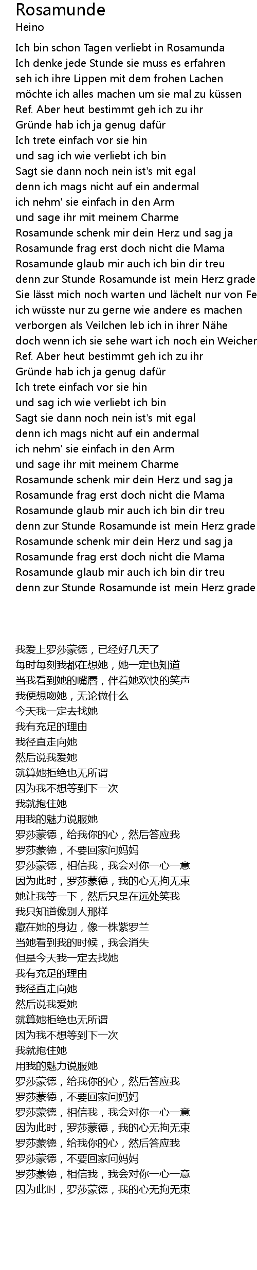 | [02:34.580] | Rosamunde glaub mir auch ich bin dir treu |