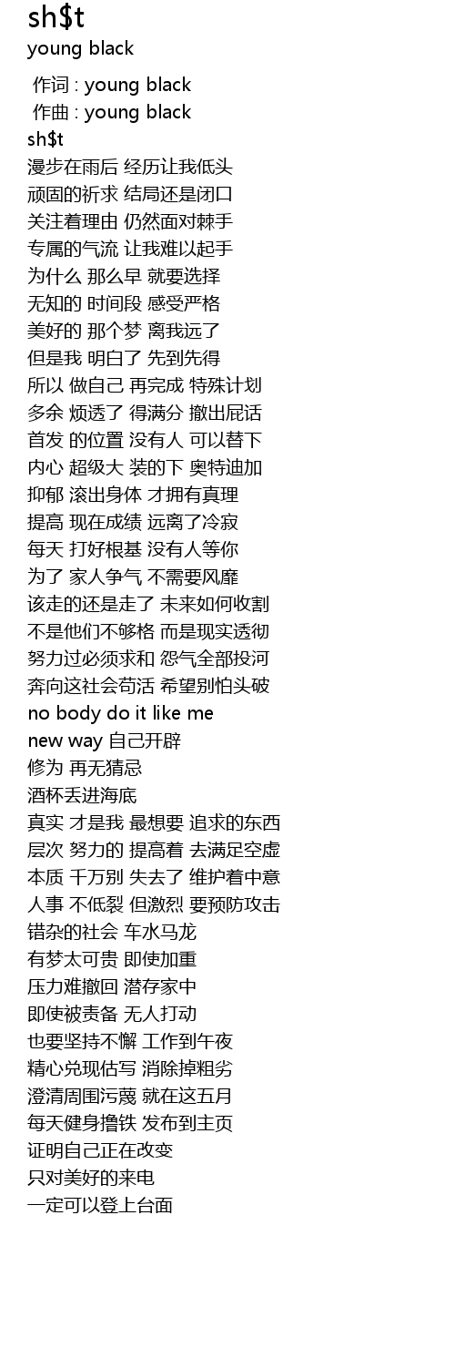 | [00:00.000] | 作词 : young black |