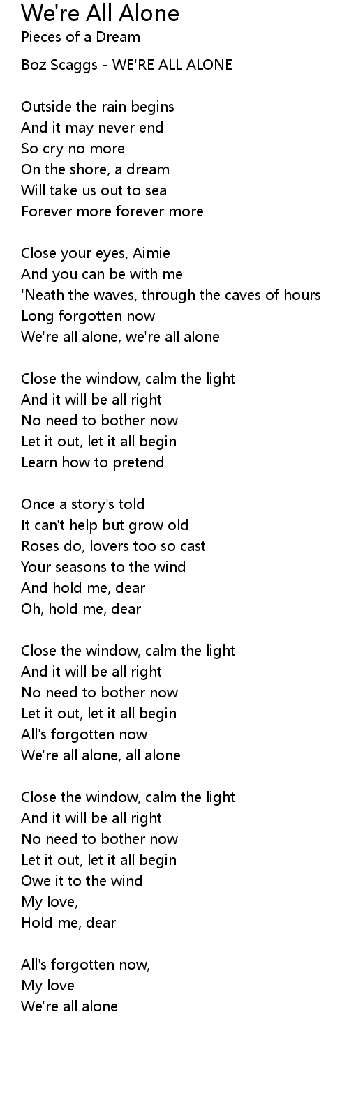We're all alone, all alone |