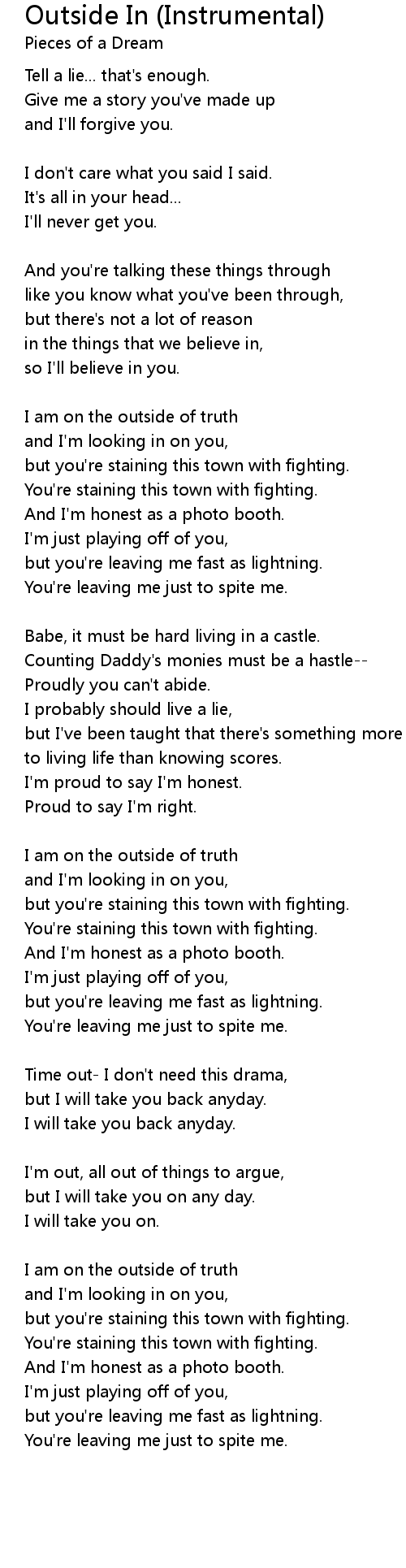 Outside In (Instrumental) Lyrics