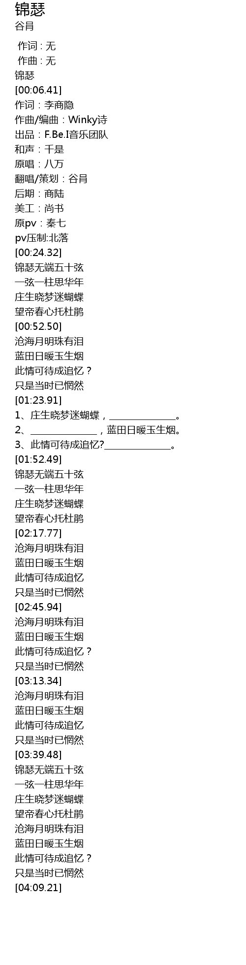 | [00:00.00] | 锦瑟 |