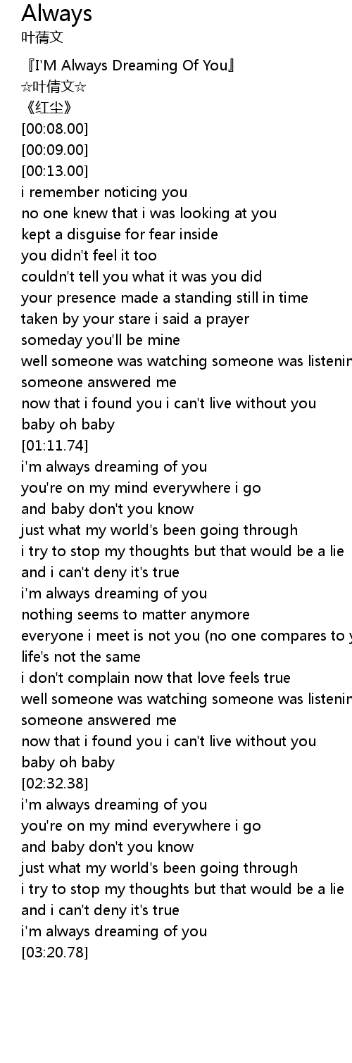 | [00:00.00] | 『I'M Always Dreaming Of You』 |