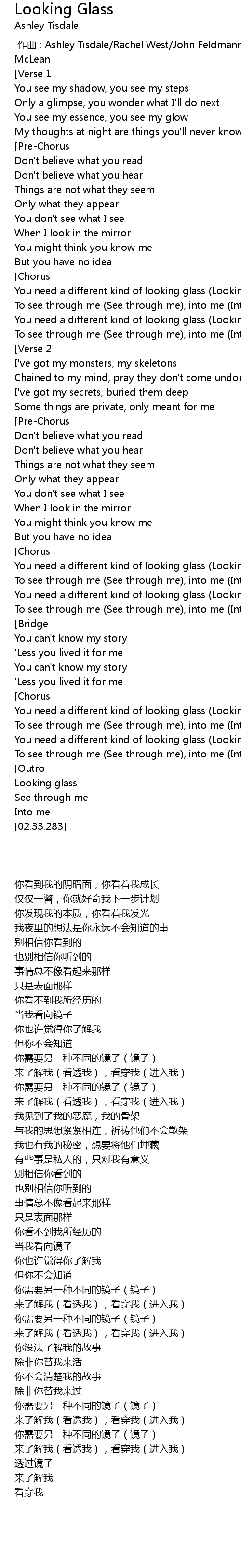 | [02:16.016] | You need a different kind of looking glass Looking glass |