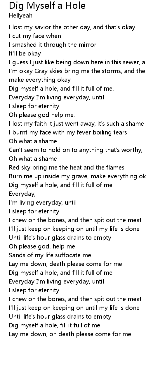 Dig myself a hole, and fill it full of me |