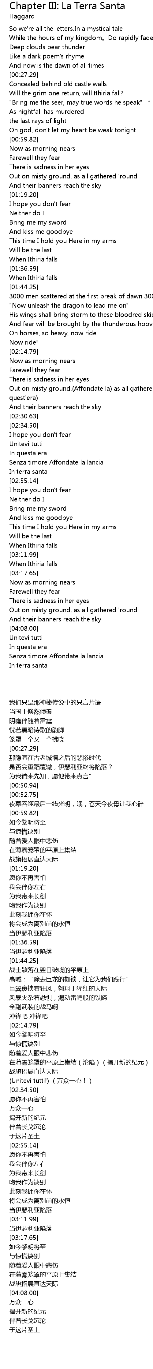| [02:23.58] | Out on misty ground, Affondate la as all gathered ' round In quest' era |