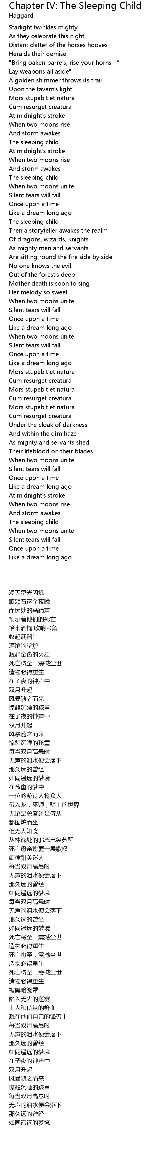 | Song | Chapter IV: The Sleeping Child |