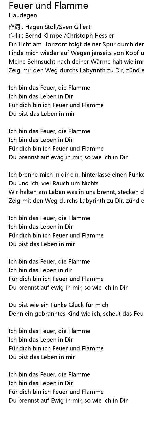 | Zeig mir den Weg durchs Labyrinth zu Dir, zü nd ein Feuer fü r mich an | |