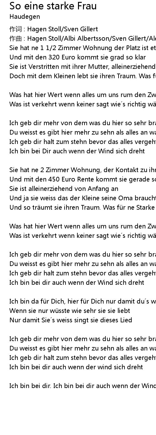 | Nur damit Sie s weiss singt sie dieses Lied | |