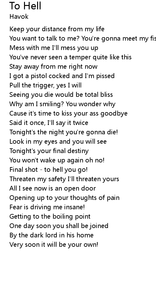| Seeing you die would be total bliss | |