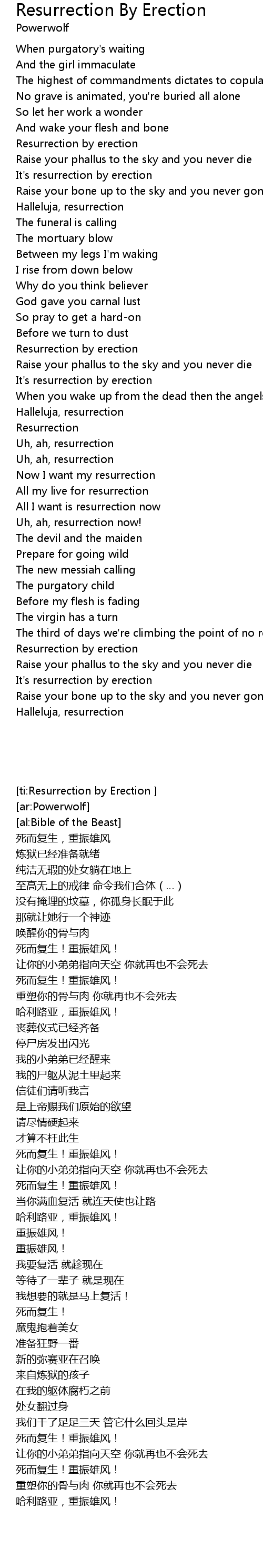 Now I want my resurrection |